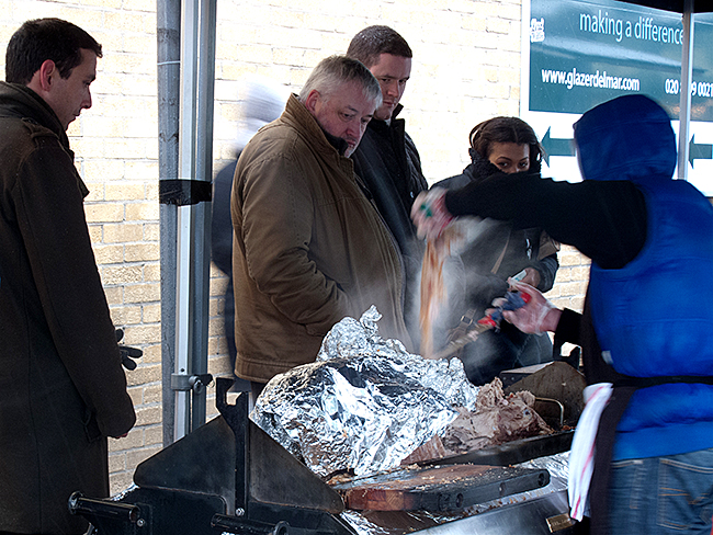 Saturday and I was supposed to go down to Haselmere to a mates place to work on my bike, -1c and snow put paid to that. So we wandered down the high street for some lunch and errands. The Northcote road Saturday market was going strong, this guy cooks a whole pig each Saturday and sells the lot every time. Smelt good to.